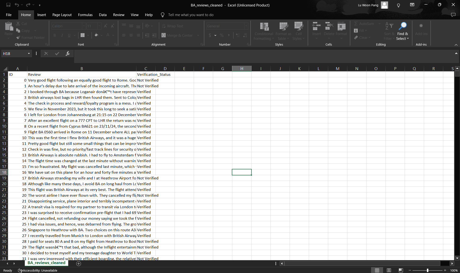 This is a project from British Airways' job simulation on Forage. All code can be found here.