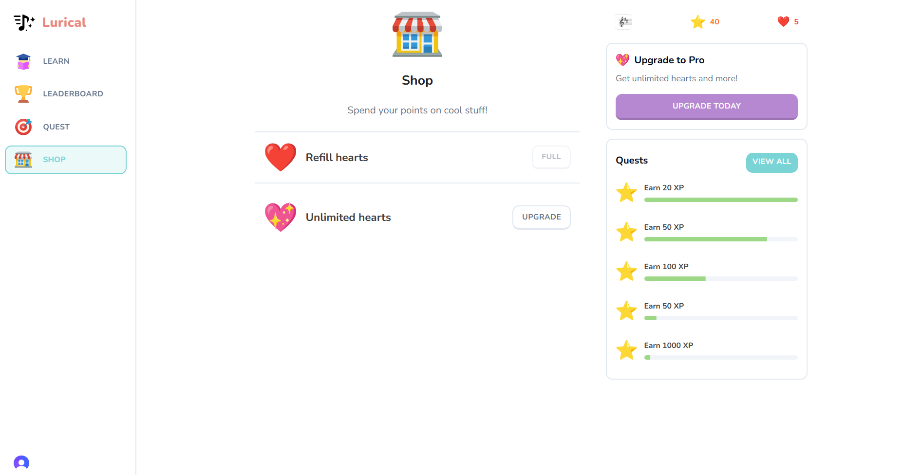 Lurical is a Next.js project bootstrapped with create-next-app. Inspired by the language-learning app Duolingo, I had an idea to create a gamified experience for learning music theory.