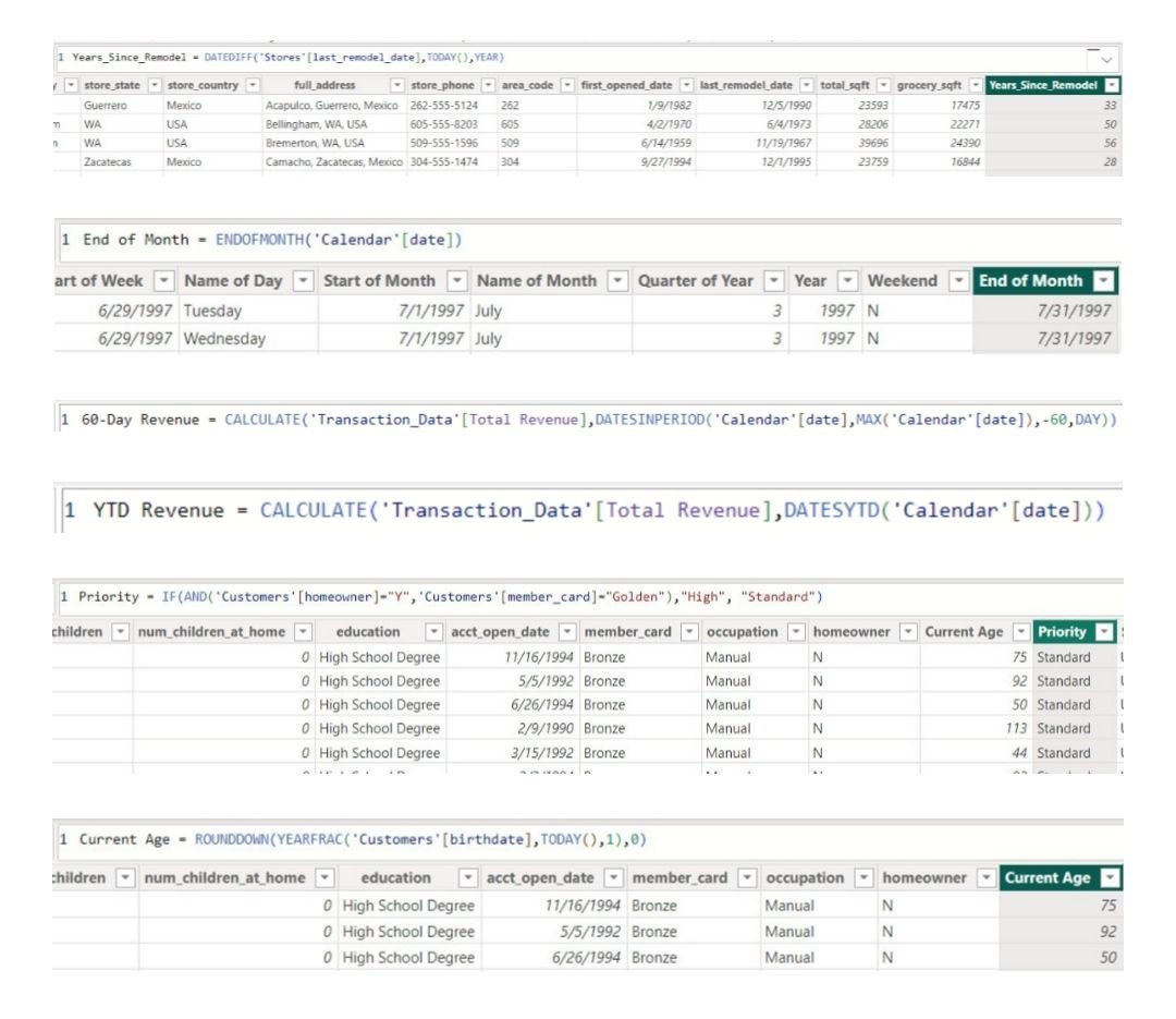 - 'Current Age' which calculates current customer ages using 'birthdate' column